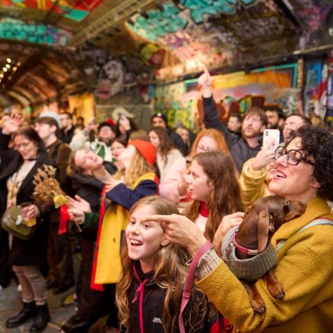 Delivered by South Bank BID and WeAreWaterloo, the star on top of the Christmas Tree of this year's 'Miracle on Leake Street' was a neighbourhood wide 'Christmassaoke', courtesy of Lucky Voice in the Sidings. Speaking of trees, there was even a gold spray can Christmas Tree, created by Leake Street's artist-in-residence in honour of Europe's longest legal public graffiti tunnel.